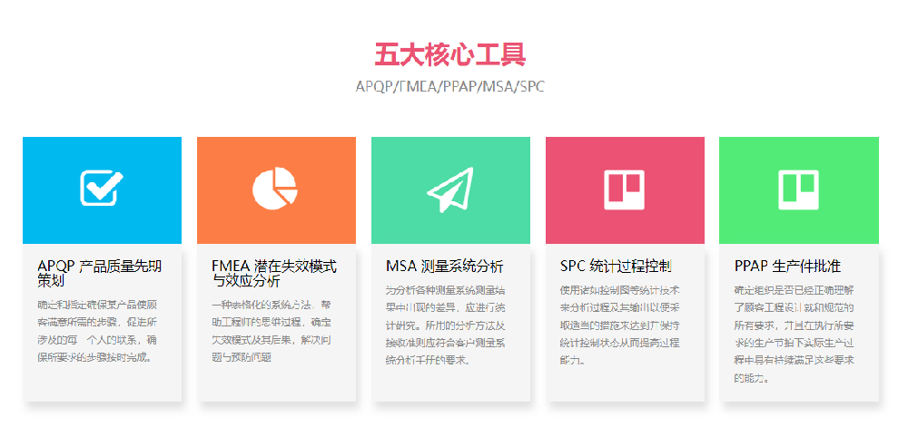IATF16949五大工具分別是:統計過程控制(SPC);測量系統分析(MSA);失效模式和效果分···